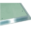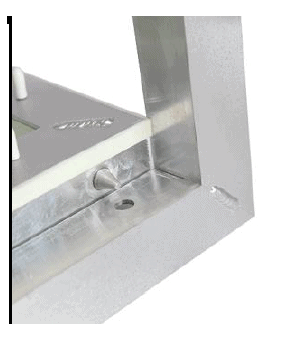 - Wewnątrz klapy zastosowano płyty gk GKBI w trzech dostępnych poziomach grubości: 12,5 mm, 15 mm lub 2x12,5 mm. Płyty o grubości 12,5 i 15 mm wklejane są do aluminiowej ramy, natomiast wkładka 2x12,5 mm przykręcana jest śrubami szybkiego montaż 3,5x25 mm. Śruby wyposażone są dodatkowo w zaślepki ochronne.