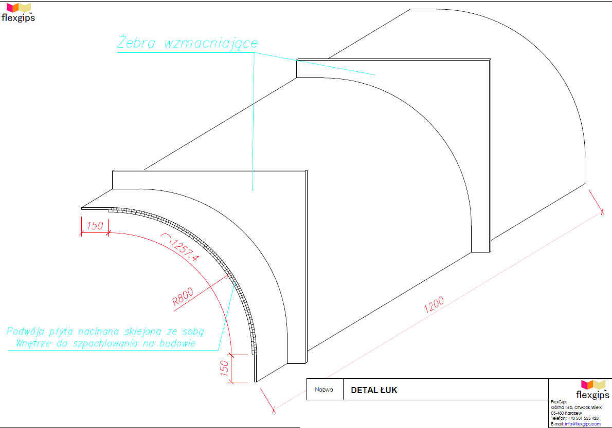 Nie poznałeś jeszcze rozwiązań FlexGips? Czas najwyższy nadrobić zaległości! Nasz nowoczesny system gipsowy to prosty, a zarazem skuteczny patent na to, by jeszcze szybciej i wygodniej wykończyć wnętrze. Przyjrzyj się dokładnie obu zdjęciom. Co rzuca Ci się w oczy? Z pewnością mniejsza ilość materiałów konstrukcyjnych, co zapewnia łatwiejszy montaż i niewiarygodną oszczędność czasu. Dzięki nam zapomnisz o szpachlowaniu i wtapianiu metalowych narożników. Od tej pory stawiamy na komfort i wygodę w wykańczaniu wnętrz! Jest jeszcze jedna kwestia, która wyróżnia nas na tle konkurencji. Do tej pory wybierać mogłeś wśród płyt do krzywizn, które można wyginać z najmniejszą średnicą 600-700 mm. My oferujemy Ci znacznie więcej! Z naszą płytą możesz wykonać średnicę już na poziomie 120 mm, w zależności od modułu nacięcia.